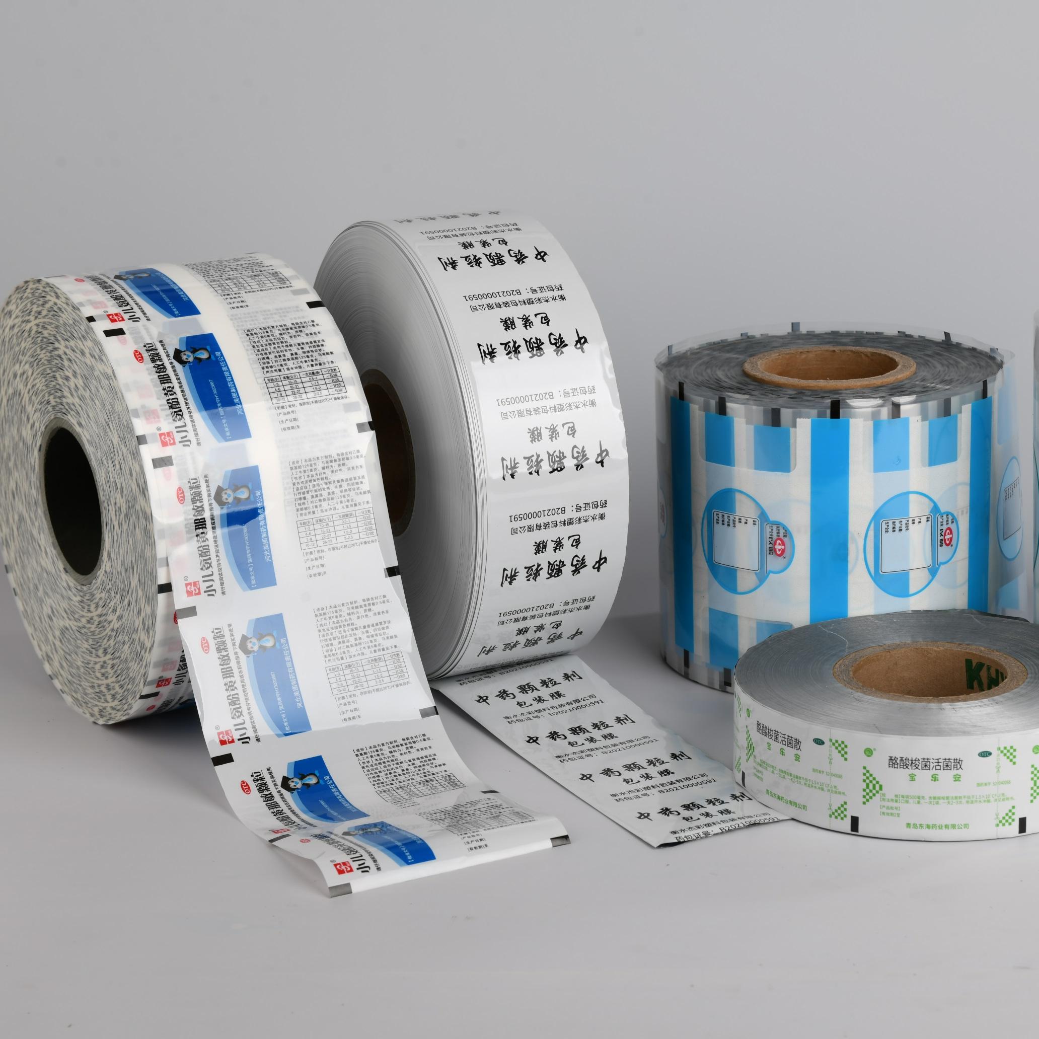 中药颗粒复合膜一般由多种不同的薄膜材质复合而成,一般分为亮光膜和哑光膜。常用的复合膜结构有聚酯与聚乙烯复合(PET/PE)、聚乙烯复合(PT/AL/PE)、聚酯与铝箔与聚乙烯复合(PET/AL/PE)、聚酯与铝箔与聚丙烯(PET/AL/CPP)、消光与铝箔与聚乙烯(BOPP/AL/PE)、纸与铝箔与聚乙烯复合(纸/AL/PE)等结构组成。